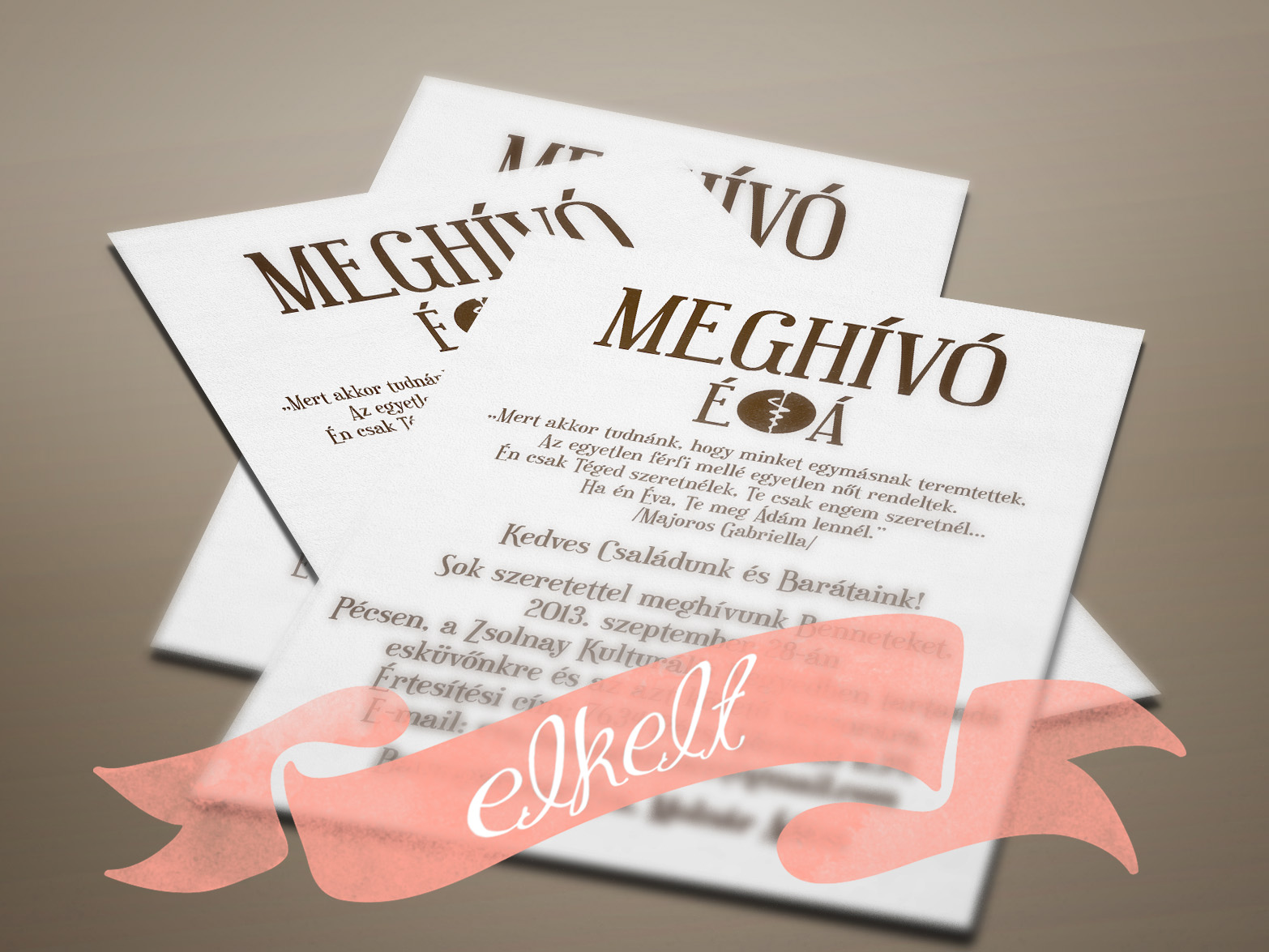 Orvos párnak készült fehér barna modern stílusú esküvői meghívó.